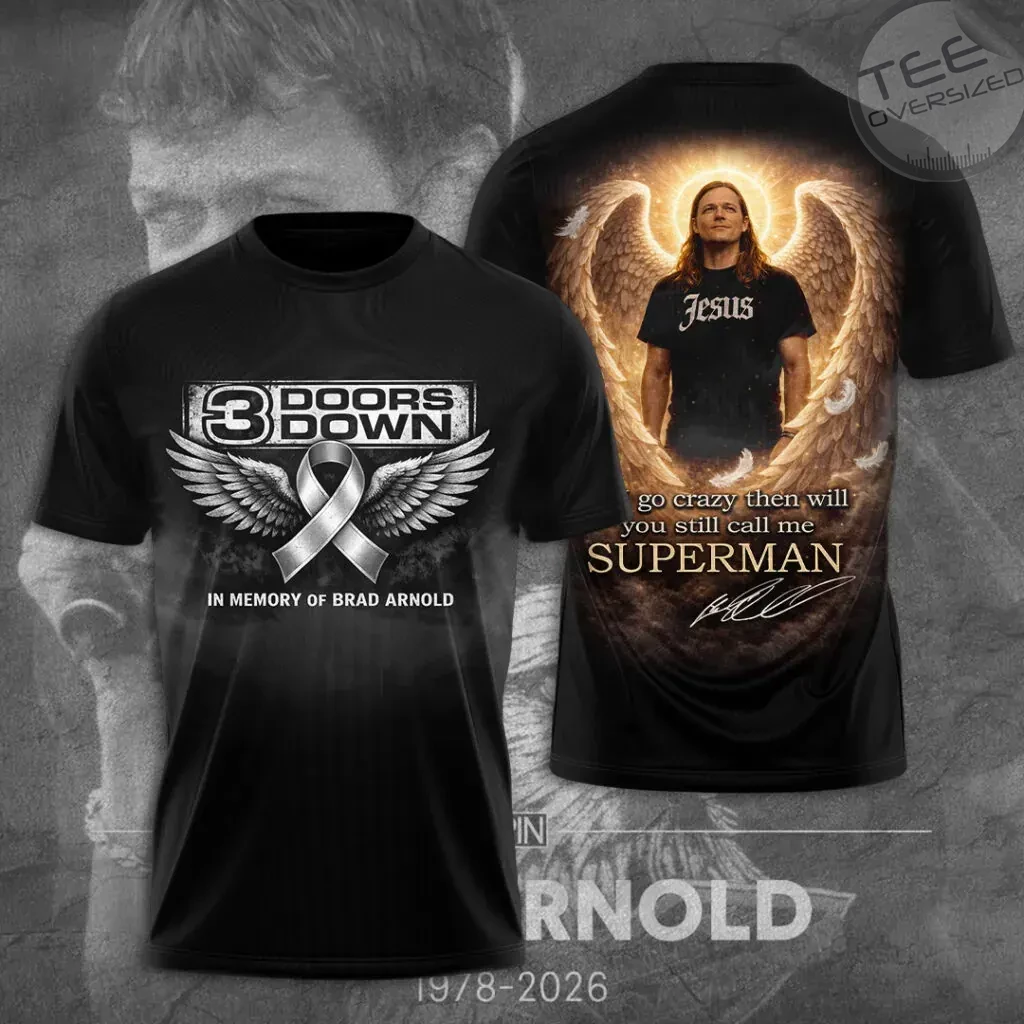 3 Doors Down x Brad Arnold T‑shirts and hoodies are designed as commemorative fan apparel, celebrating the legacy of the band’s frontman. These pieces feature tribute graphics and bold designs, making them both meaningful collectibles and stylish everyday wear.