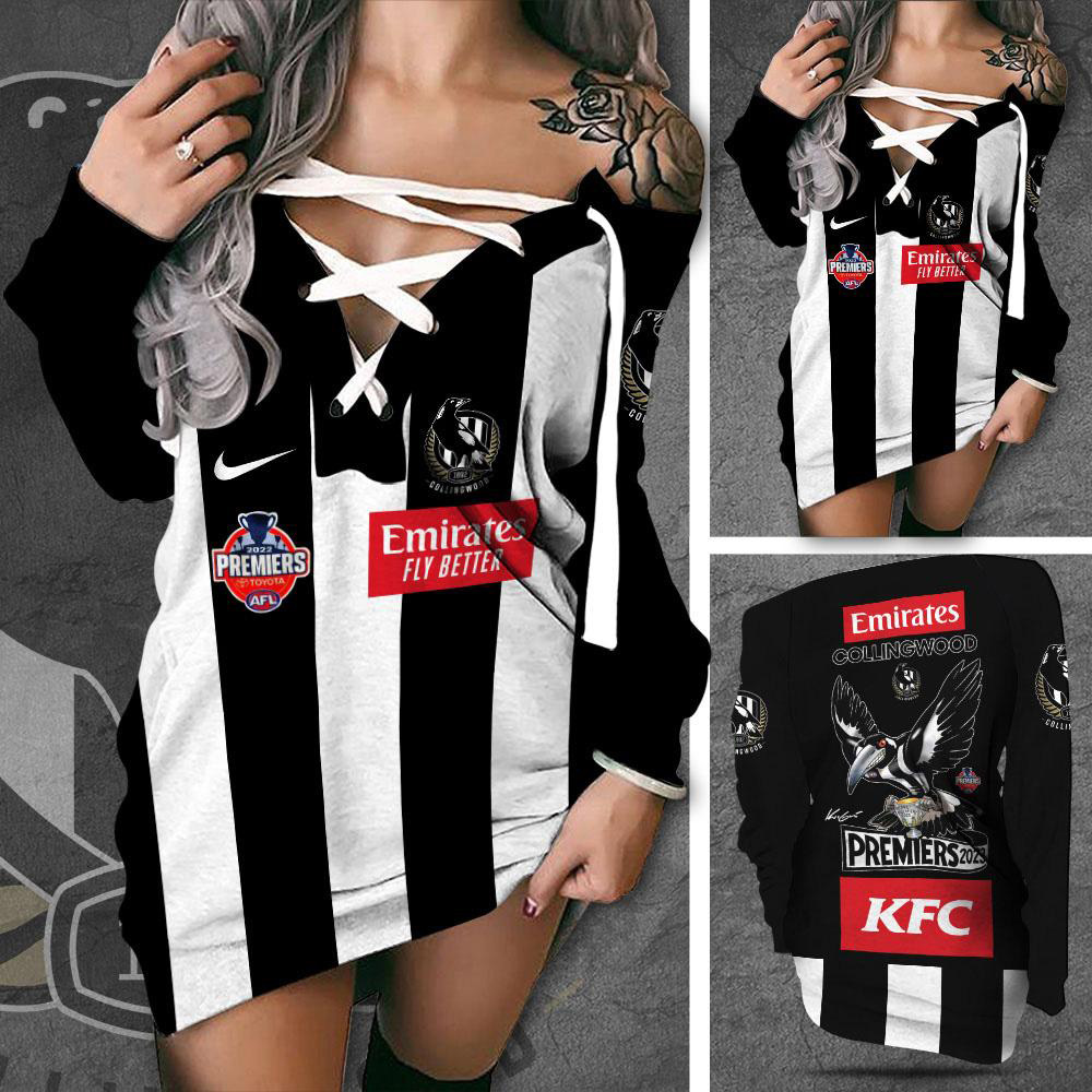 This AFL Premiers Collingwood FC Off Shoulder Deep V-Neck Lace Up Long Sleeve Pullover will make a perfect gift for Collingwood FC fans.