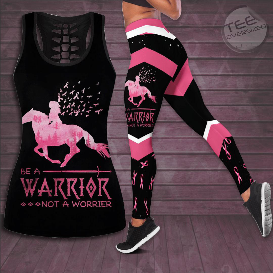 Be A Warrior Not A Worrier Breast Cancer Awareness Hollow Tank Top & Leggings