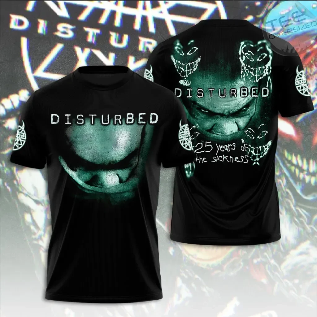 Celebrate heavy metal legacy with this premium tee—crafted from soft, durable polyester that’s wrinkle-resistant and color-fast for long-lasting vibrancy. Choose from 12 bold designs, in sizes S–5XL, and enjoy full international shipping. Production usually takes 3-7 business days; delivery takes around 7-12 days globally. A must-have for true Disturbed fans.