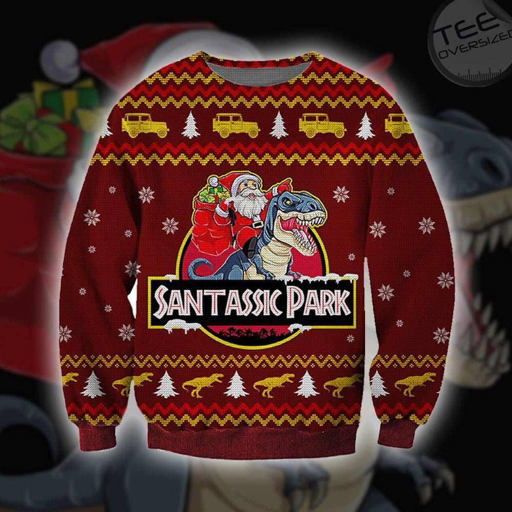 Funny Santa Santassic Park Ugly Christmas Sweater