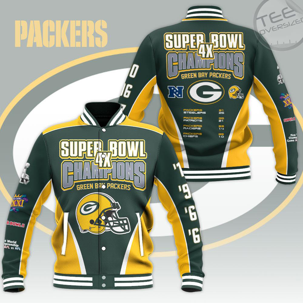 Green Bay Packers Varsity Jacket: Classic and stylish outerwear that proudly displays your dedication to the Packers.
