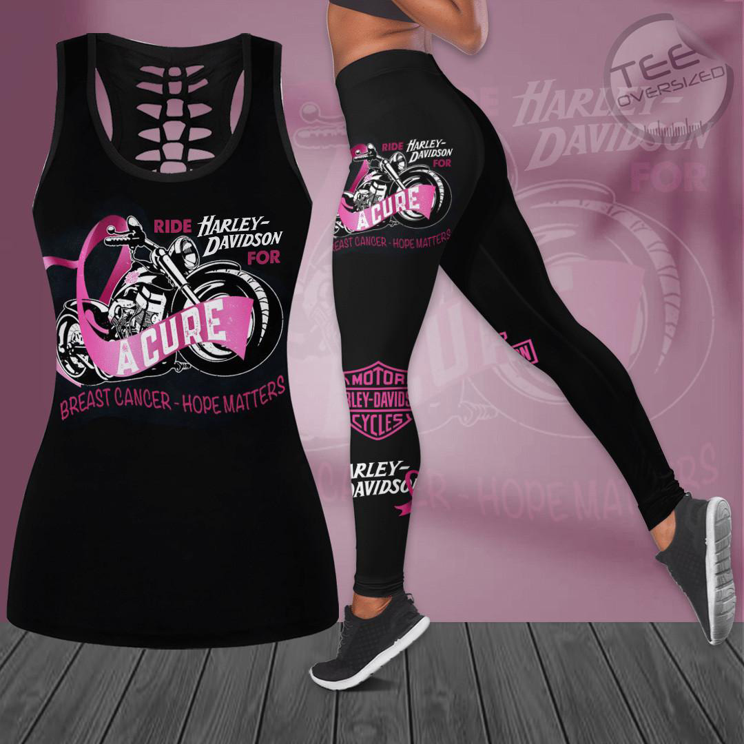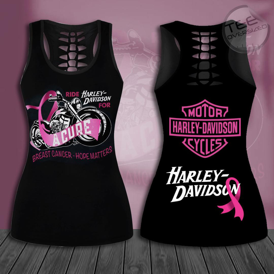 This Custom Harley Davidson 3D Hollow Tank Top & Leggings Set will show your support for Breast Cancer Awareness and make a perfect gift for Harley Davidson fans.