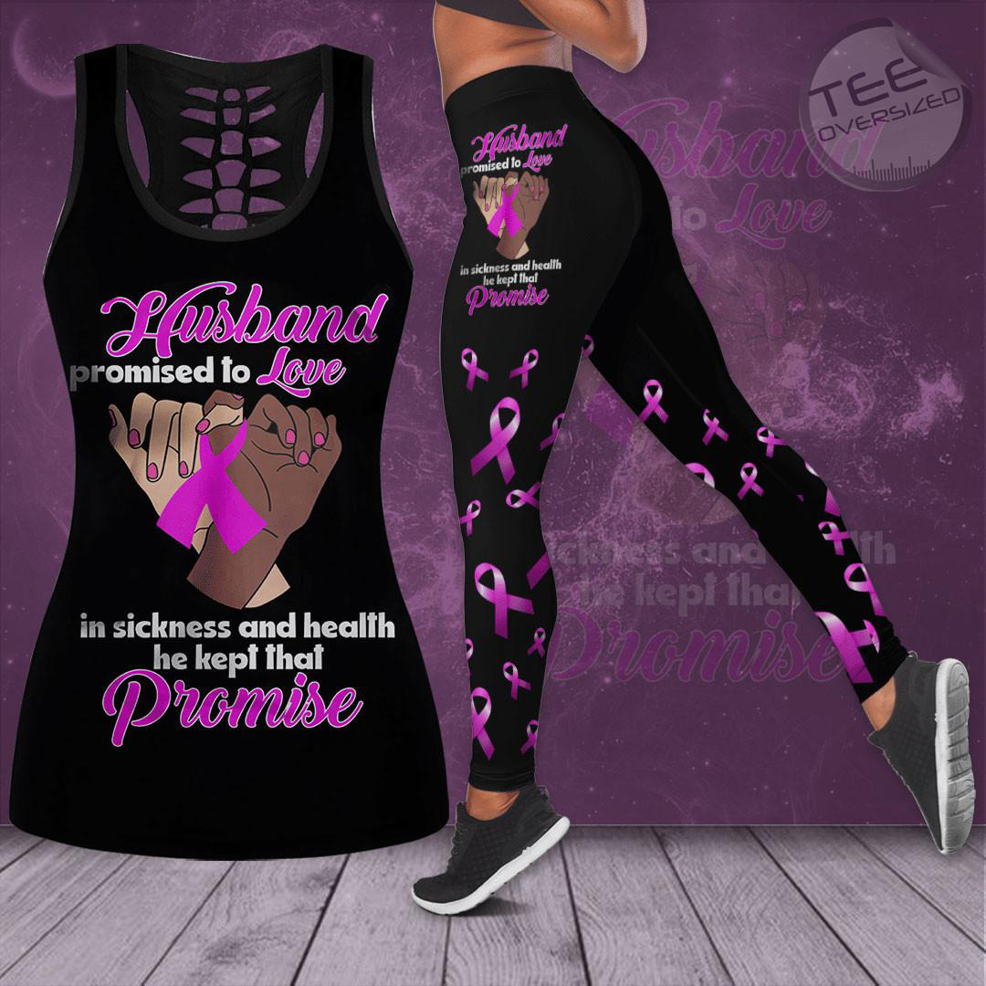 This “Husband Promised To Love In Sickness And Health He Kept That Promise” 3D Hollow Tank Top & Leggings will show your support for Breast Cancer Awareness.