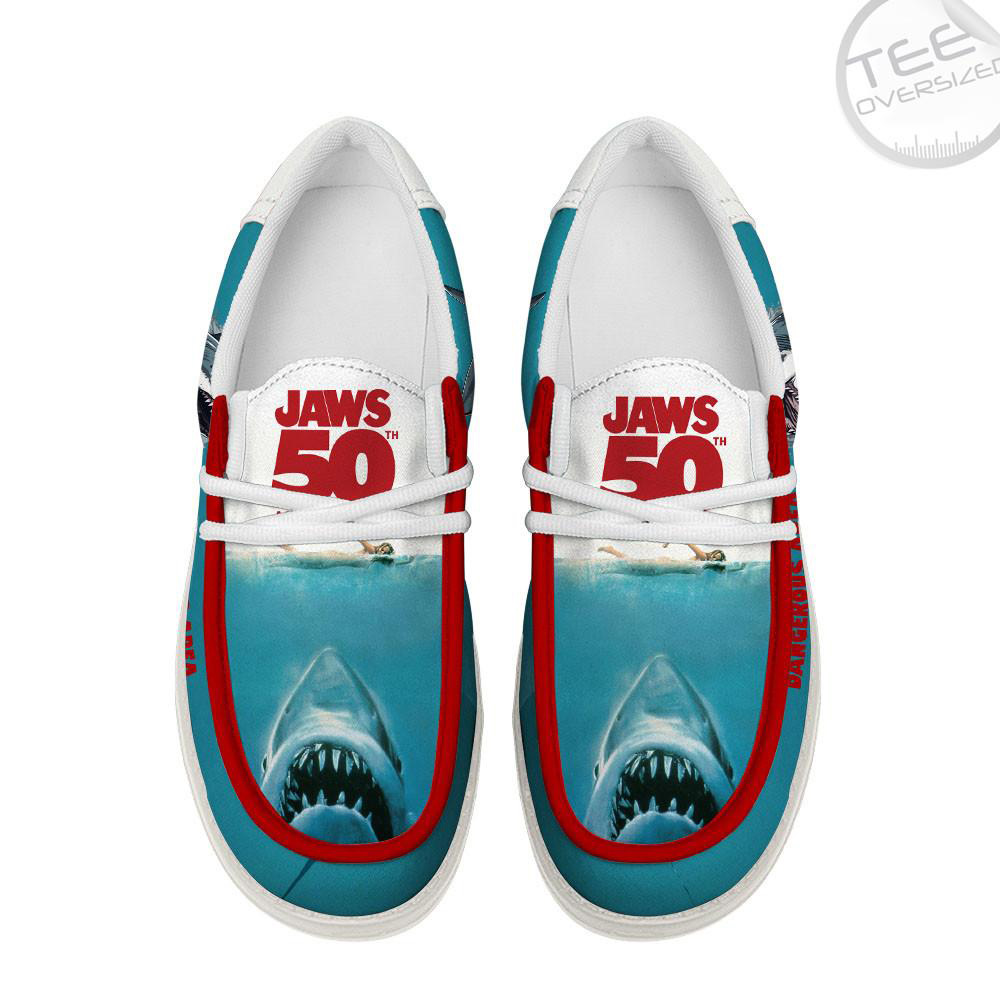 Step into style with JAWS Dudes Loafer Shoes — striking slip-ons featuring the iconic shark design inspired by Jaws. Made with breathable canvas, cushioned insoles, and stretch side panels for easy wear. Perfect for everyday wear or making a statement, these sneakers combine bold graphics with comfort. Eye-catching, lightweight, and ready to thrill.