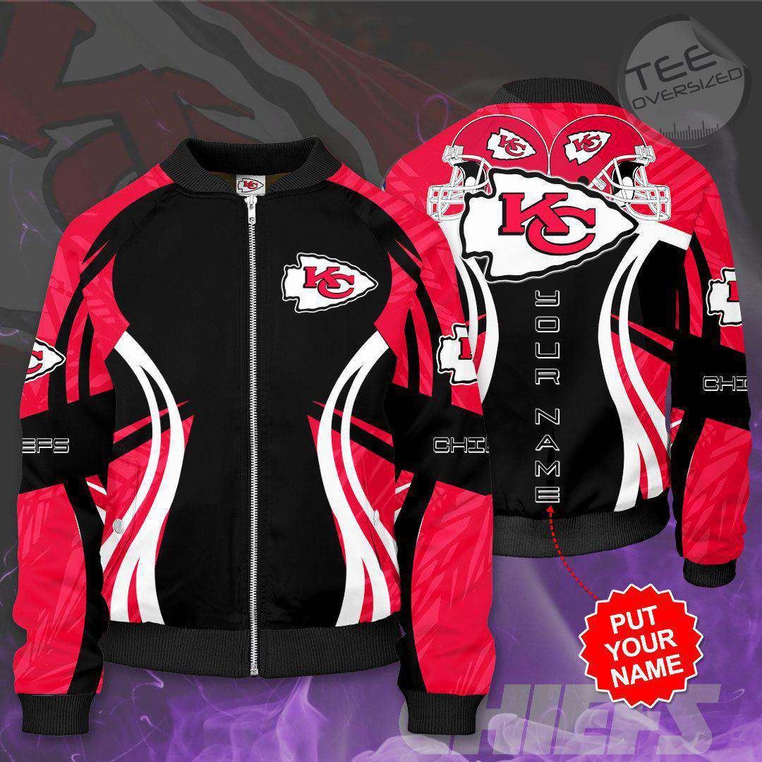 Size: S, M, L, XL, XXL, 3XL, 4XL, 5XL. Please review the Kansas City Chiefs bomber jacket sizechart and measuring instruction carefully before placing order as we CAN NOT offer return or refund if you choose a wrong size.