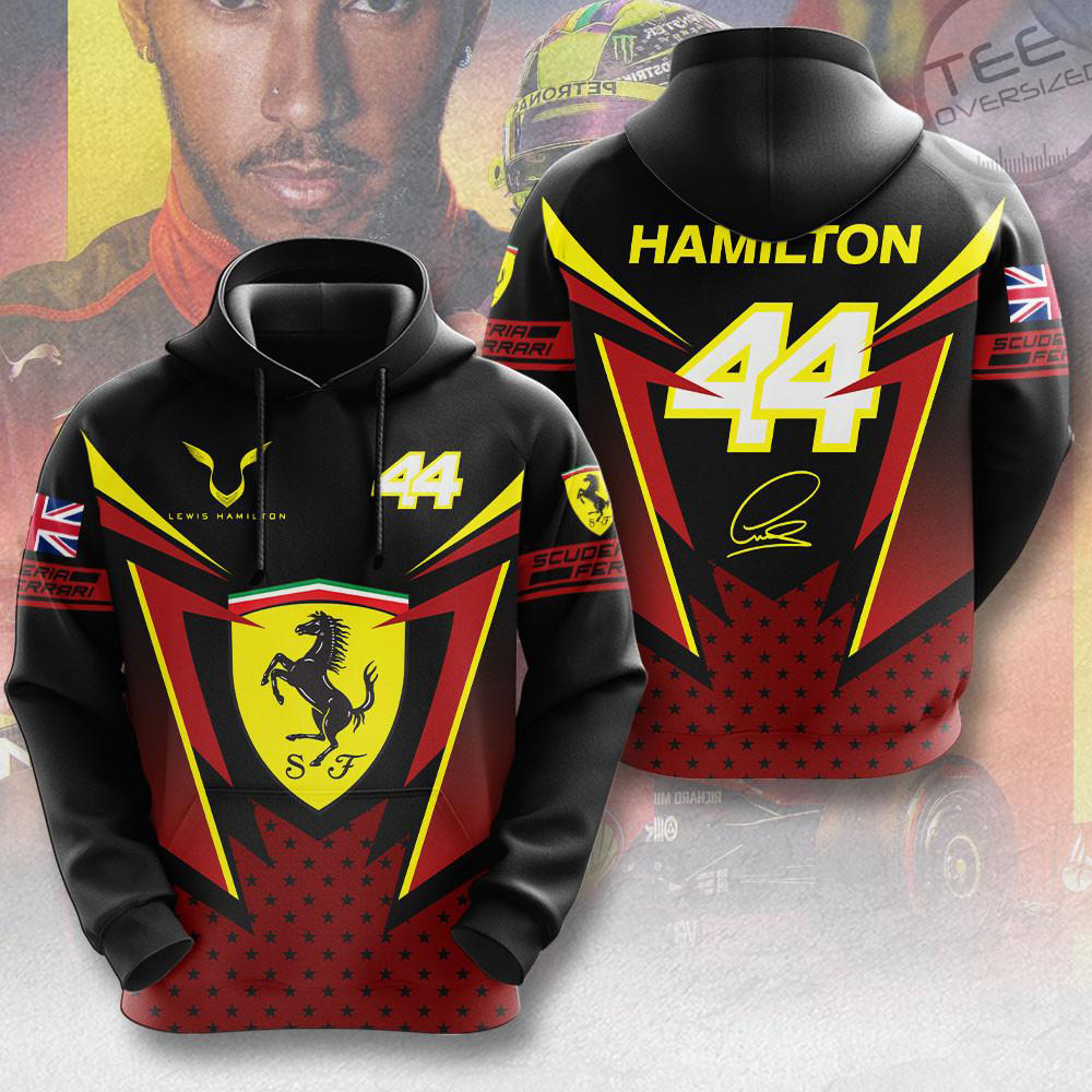 Show your F1 faith with the Lewis Hamilton Polo, T-Shirt & Hoodie set—three essential pieces of fanwear. The polo delivers a smart, relaxed fit with a soft collar and button placket. The tee is made for casual vibrancy, and the hoodie adds warmth with a drawstring hood and kangaroo pocket. All feature Hamilton’s “44” branding and bold visuals. Available in sizes S–5XL, relaxed unisex. Ships globally.