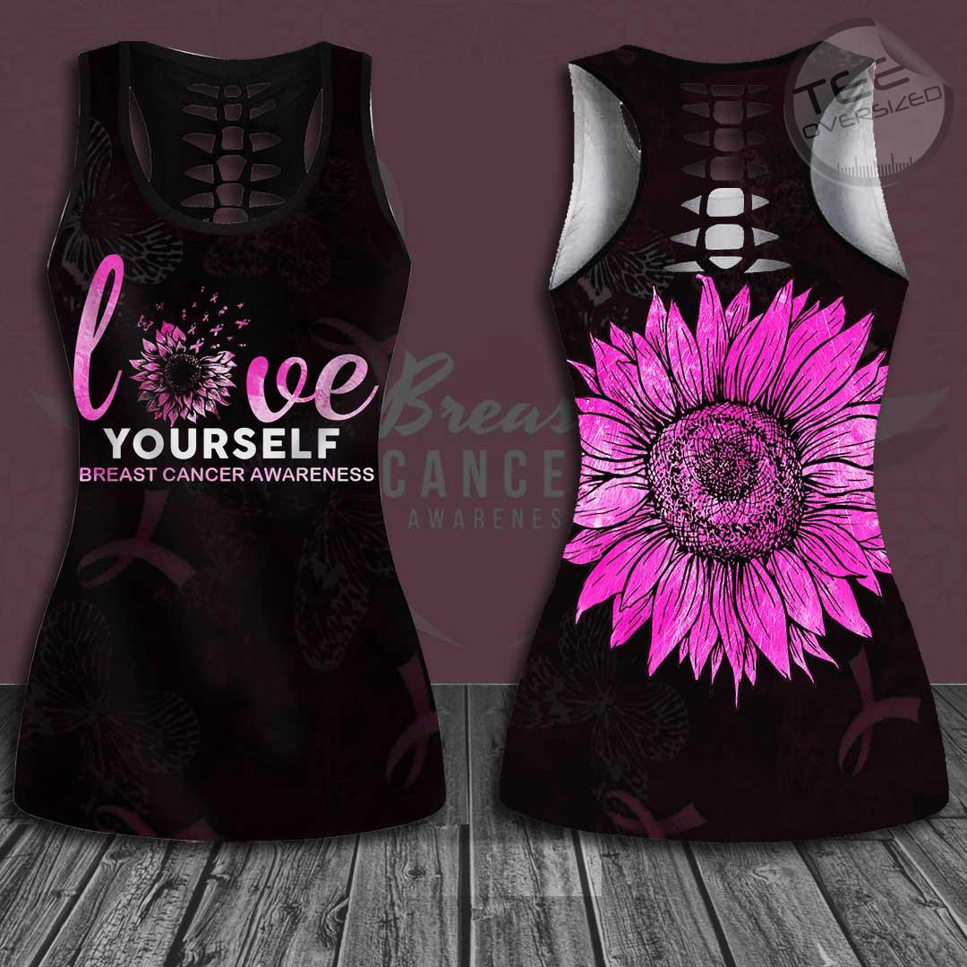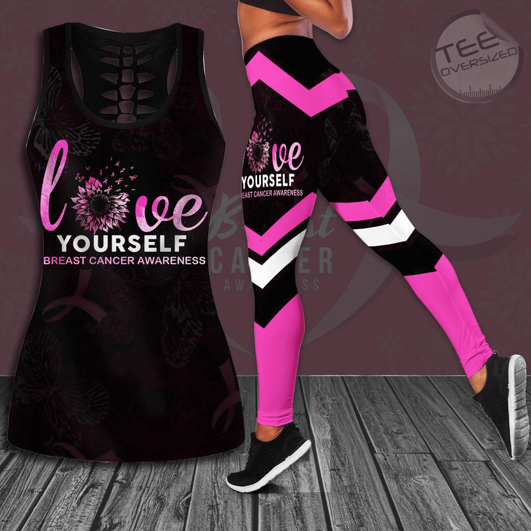 Love Yourself Breast Cancer Awareness Hollow Tank Top & Leggings