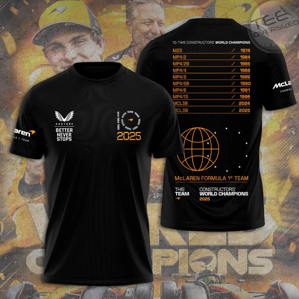 Celebrate McLaren’s triumph with the McLaren 2025 Constructors’ Championship T-Shirt. This bold, commemorative tee features dramatic graphics and a modern fit that stands out. Crafted for fans, it’s an essential piece to mark their 2025 F1 victory. Wear your pride on your sleeve.