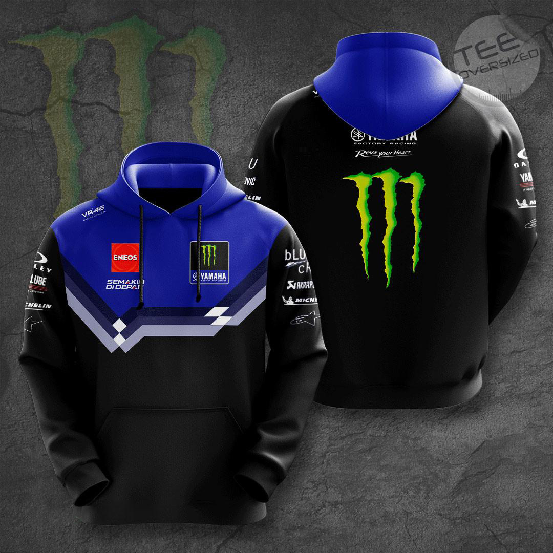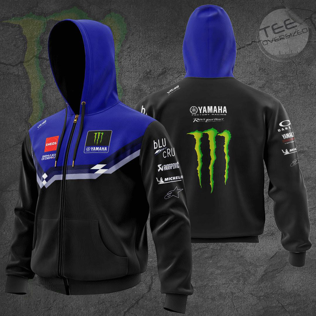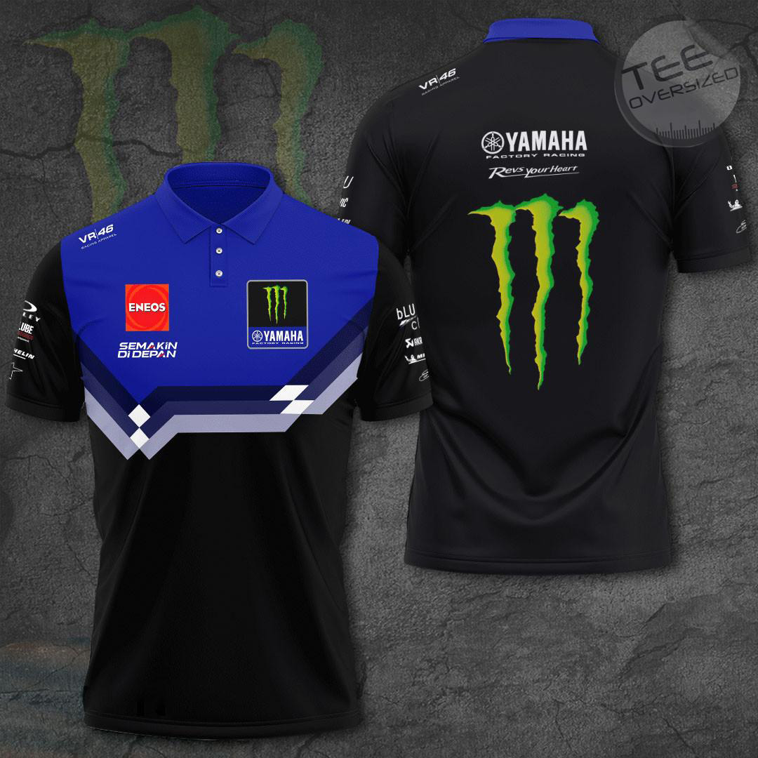The Monster Energy Yamaha MotoGP Apparel is a collection of clothing that features the iconic Monster Energy logo alongside the Yamaha MotoGP team branding. This line of apparel includes T-shirts, hoodies, polo shirt, and zip-up hoodies, short sleeve shirts, sweapants all designed with high-quality materials and attention to detail. These products are perfect for fans of the Yamaha MotoGP team who want to show their support in style, whether at the track or in everyday life.
