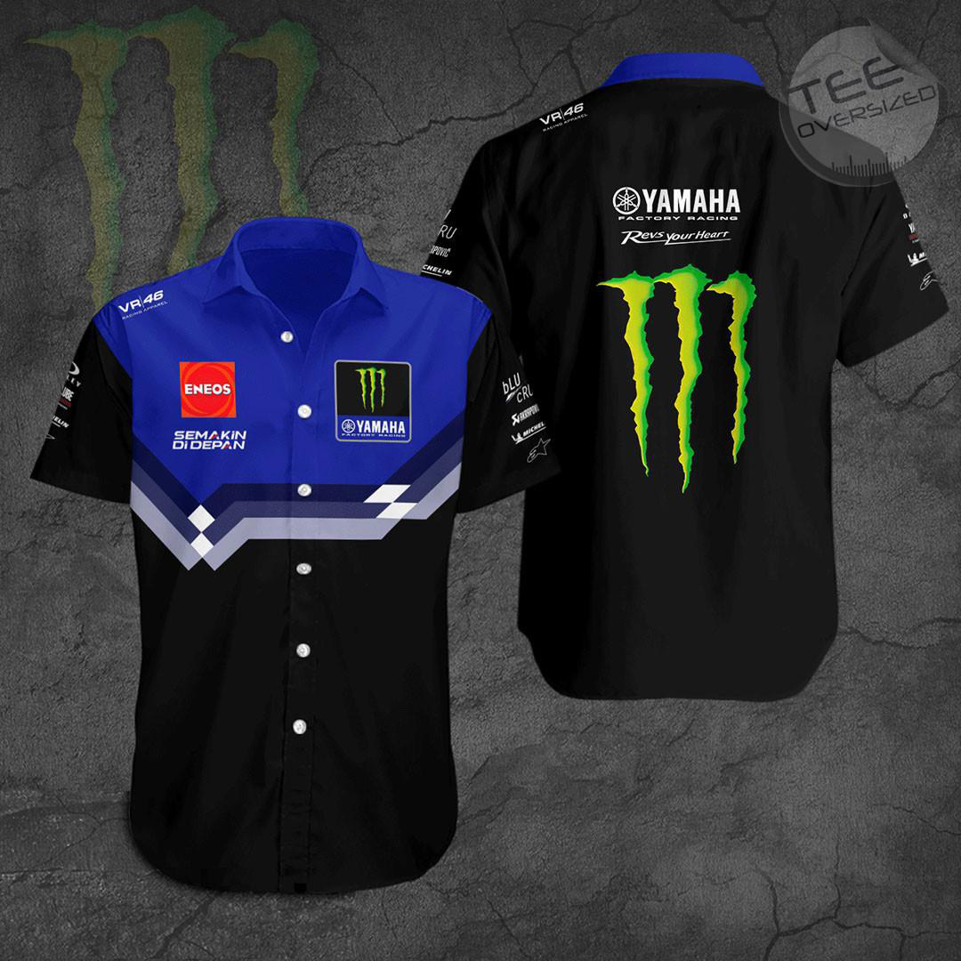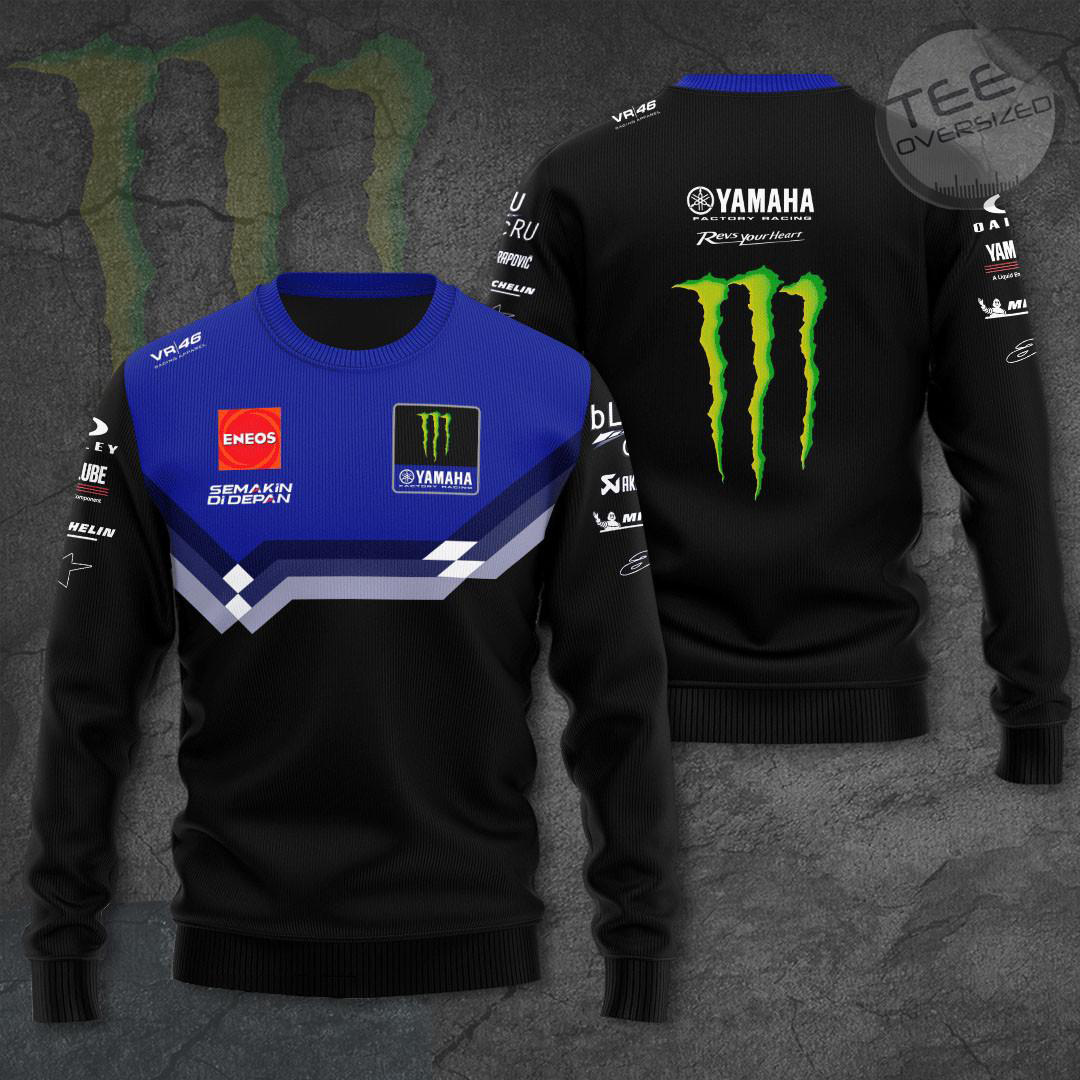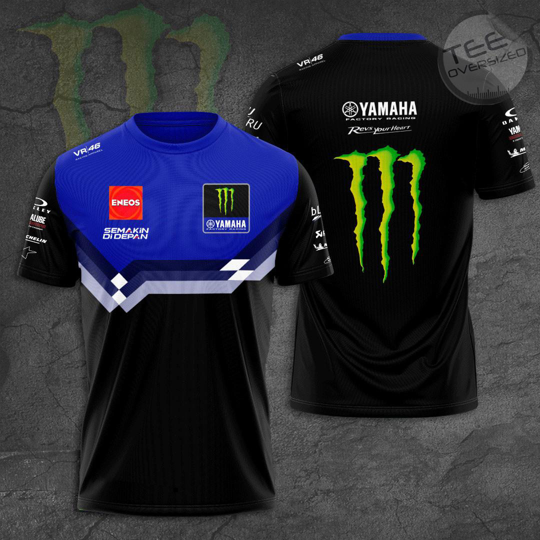 The Monster Energy Yamaha MotoGP Apparel is a collection of clothing that features the iconic Monster Energy logo alongside the Yamaha MotoGP team branding. This line of apparel includes T-shirts, hoodies, polo shirt, and zip-up hoodies, short sleeve shirts, sweapants all designed with high-quality materials and attention to detail. These products are perfect for fans of the Yamaha MotoGP team who want to show their support in style, whether at the track or in everyday life.