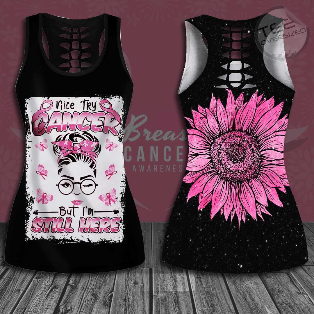 Nice Try Cancer But I’m Still Here Breast Cancer Awareness Hollow Tank Top & Leggings