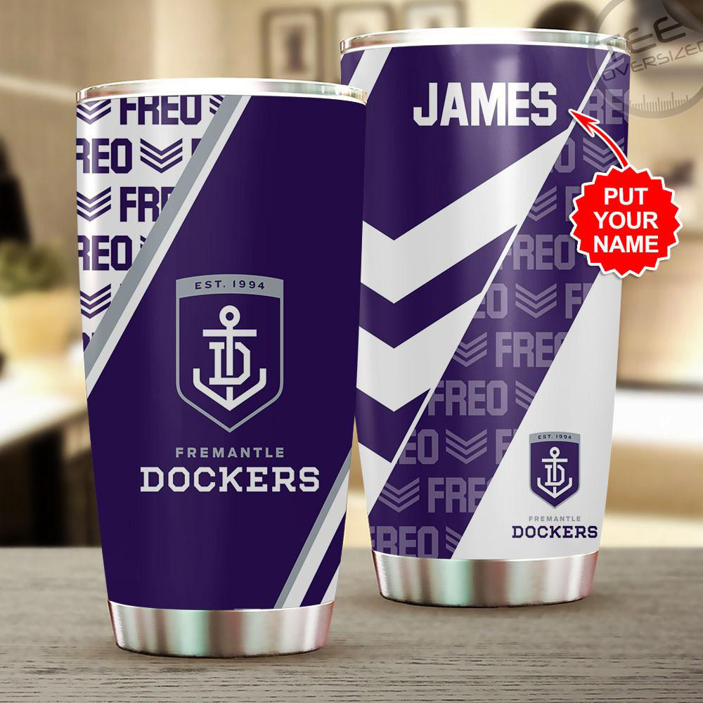 Customized Fremantle Football Club Tumbler Cup: Show your Dockers pride with this personalized, stylish tumbler for every dedicated fan.