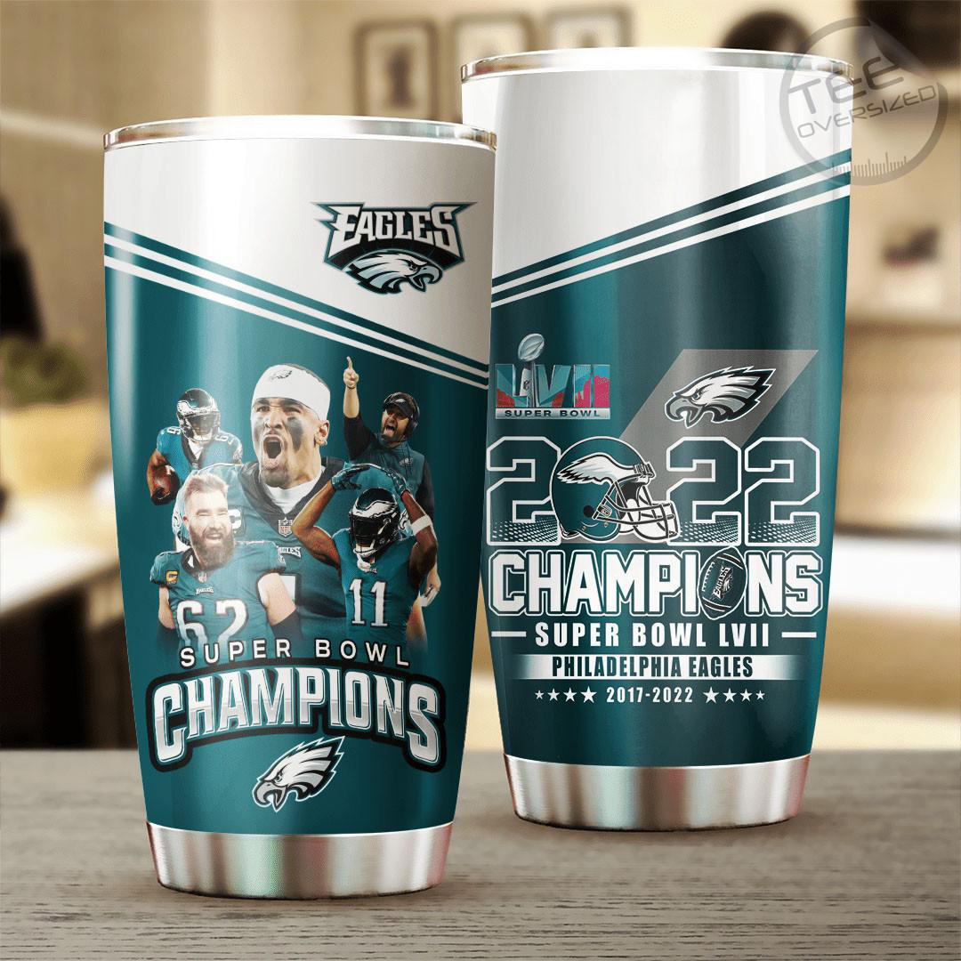 A Philadelphia Eagles Super Bowl LVI tumbler cup is a type of drinkware that is designed with the team’s logo and colors. Tumbler cups are commonly used for holding cold or hot beverages and are made from materials such as stainless steel, plastic, or ceramic. They are portable and often have a lid to prevent spills. They are popular among fans of the Philadelphia Eagles and are often used to show support for the team.. This Philadelphia Eagles Super Bowl LVI Tumbler Cup would make a perfect gift for Philadelphia Eagles fans and lovers.