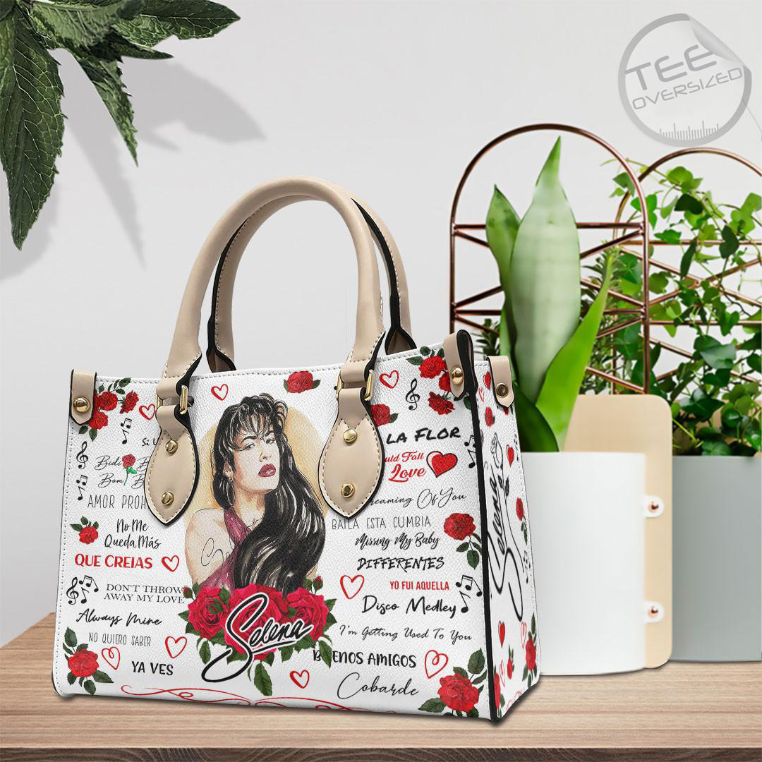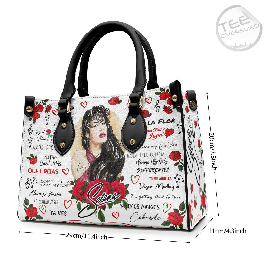 Carry your style with grace and pay homage to the Queen of Tejano music with this Selena Quintanilla Pérez Leather Handbag. A chic accessory for fans! #SelenaQuintanillaHandbags
