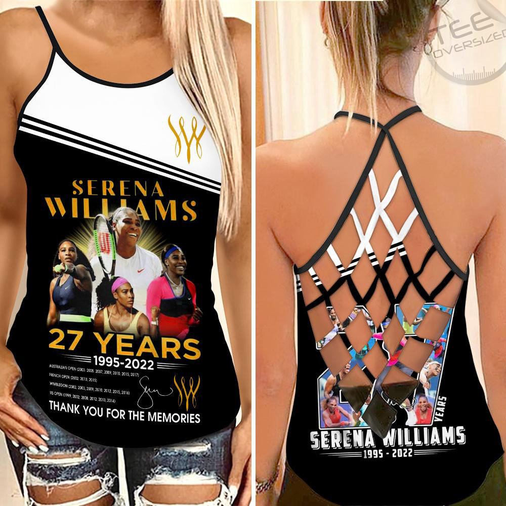 The Serena Williams Criss-Cross Tank Top is a stylish and comfortable piece for fans of the tennis legend. Featuring a unique criss-cross design and made from high-quality materials, this tank top is perfect for workouts or casual wear, allowing you to showcase your admiration for Serena Williams with flair.