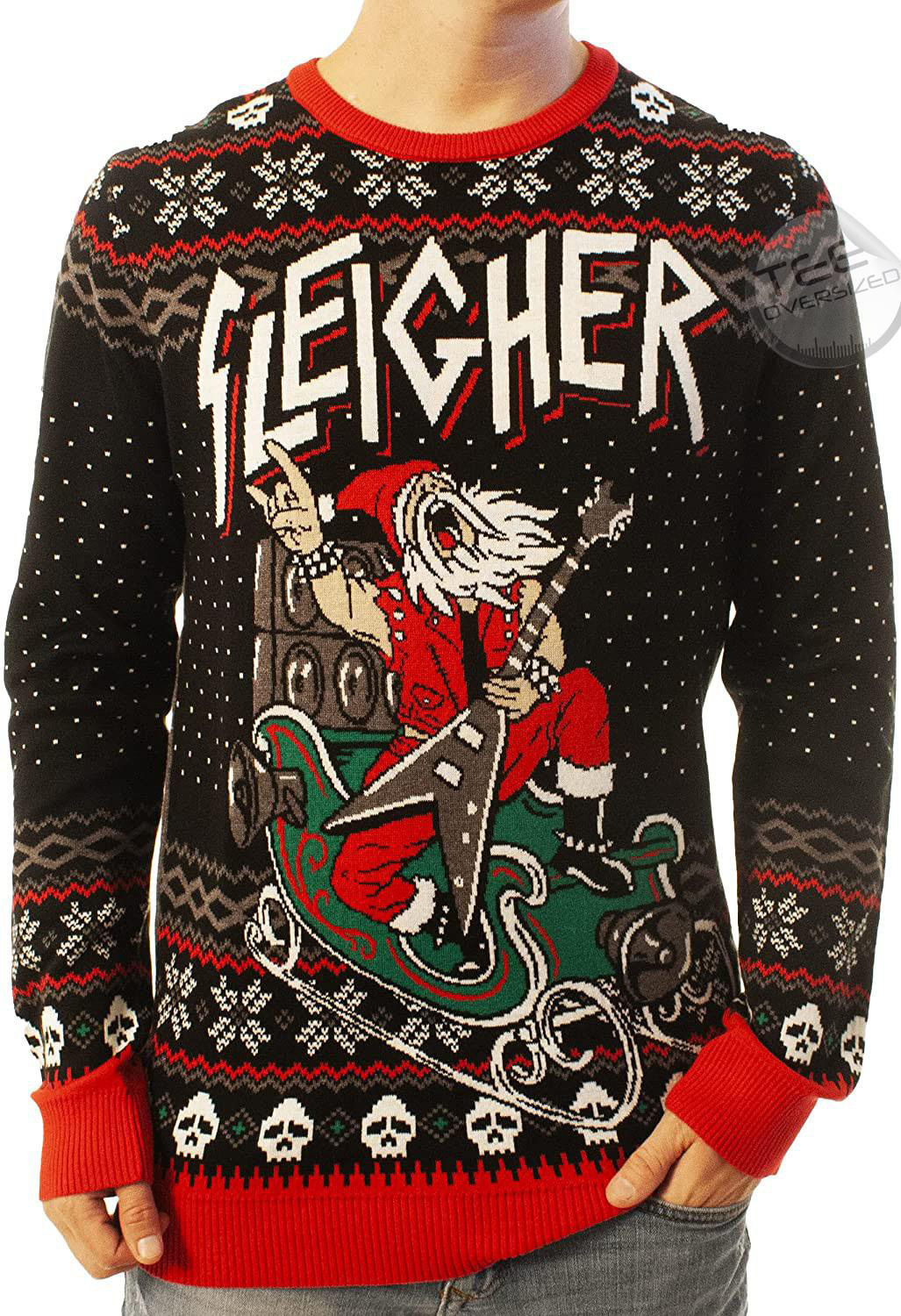 Sleigher Black, Funny Santa Ugly Christmas Sweater