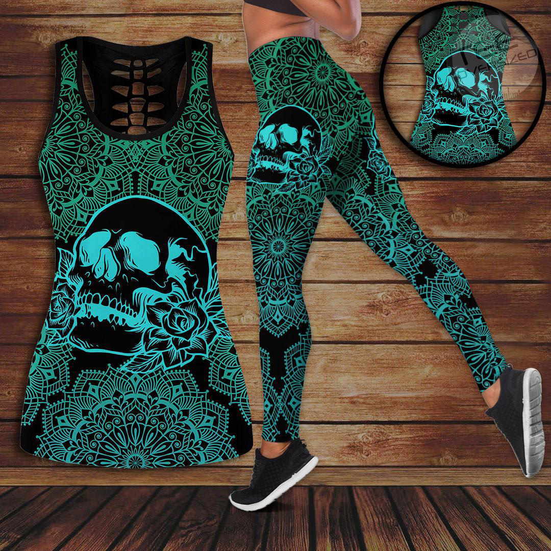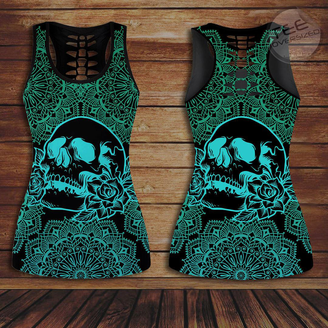 Sugar Skull Hollow Tank Top, Leggings Set