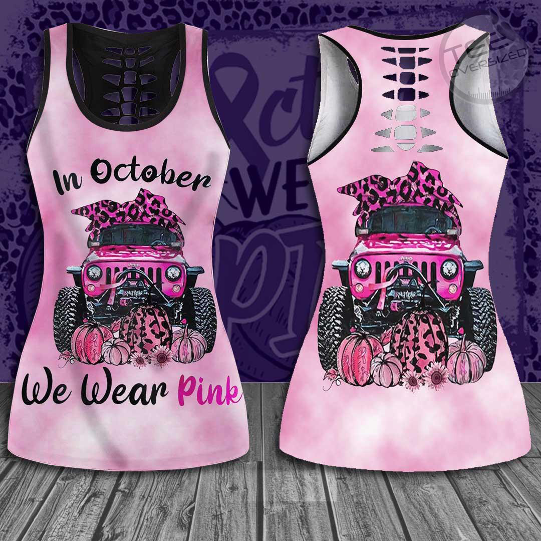 We Wear Pink Breast Cancer Awareness Hollow Tank Top & Leggings
